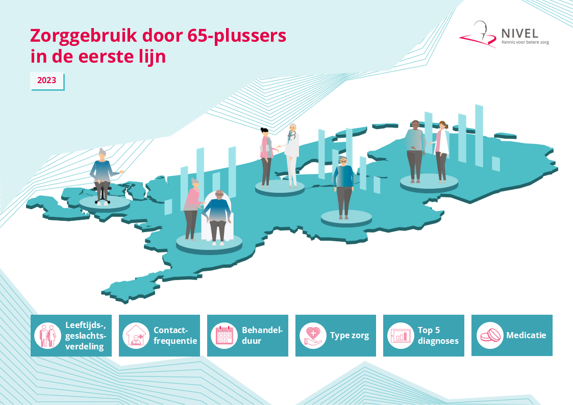 De Nederlandse bevolking vergrijst. Met de vergrijzing en het feit dat mensen steeds langer thuis blijven wonen, stijgt de vraag naar eerstelijnszorg alleen maar verder. Nivel Zorgregistraties Eerste Lijn biedt de mogelijkheid om eerstelijns zorggebruik door 65-plussers te onderzoeken en in kaart te brengen. In een infographic laten we zien wat mogelijk is.